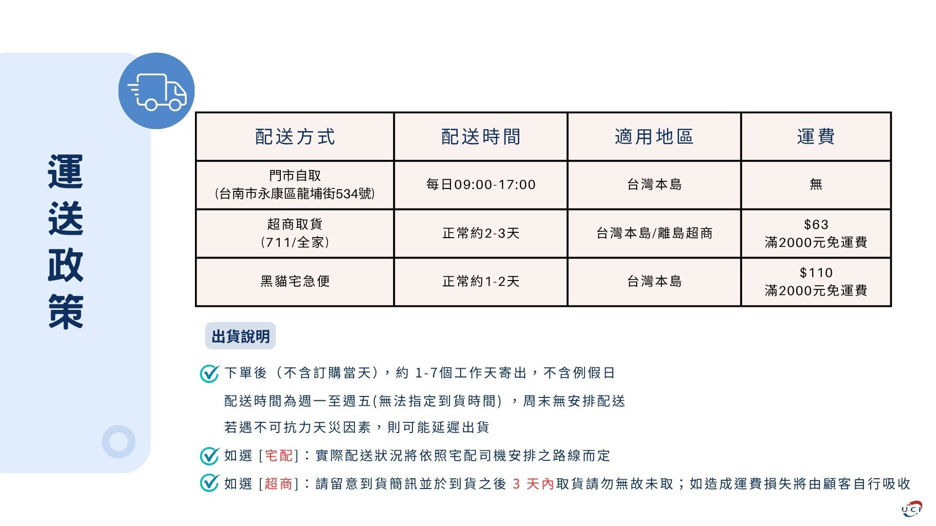- 若節慶假日遇訂單較多或不可抗力天災因素,則可能延遲出貨